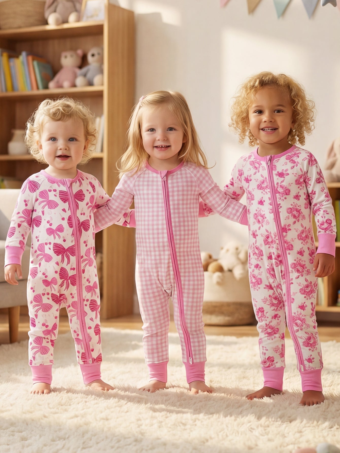 Our products are made from a premium blend of 95% bamboo fiber and 5% spandex — ultra-soft, breathable, and perfect for sensitive skin. We never use flame-retardants or harsh chemicals, so you can dress your baby with confidence.