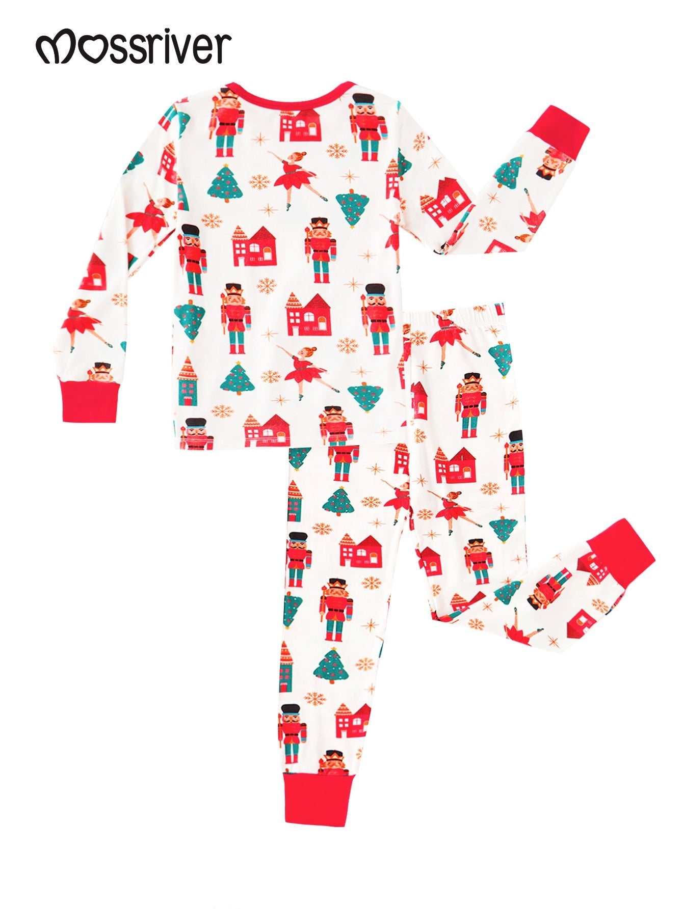 Description: Wrap your little one in the gentle embrace of our MOSSRIVER King and Princess Print two-piece pajama set. Crafted from a luxurious blend of 95% bamboo fiber and 5% spandex, this outfit offers exceptional softness and a comfortable stretch, perfect for all-night wear and active little ones. The breathable fabric ensures your child stays cozy without overheating, making it ideal for all seasons. The delightful print features a charming combination of regal kings, graceful princesses, whimsical toy soldiers, festive Christmas trees, and cozy little houses, creating a playful and enchanting bedtime scene. This adorable set isn't just sleepwear; it's a gift of comfort and sweet dreams, making it a wonderful present for any occasion. *Snug fit in accordance with all CPSC safety regulations. Our pajamas are never treated with flame-retardants or chemicals!* Product Details: * Super Soft Comfort: Gentle bamboo fiber blend * Charming Print Pattern: King, Princess, toy soldier, Christmas tree, house * Perfect for All Seasons: Breathable and comfortable * Great Gift Choice: Ideal for baby showers, birthdays * Durable and Practical: Withstands washes and wears Care Instructions: * Machine wash cold, gentle cycle * Tumble dry low * Do not bleach * Low iron if needed