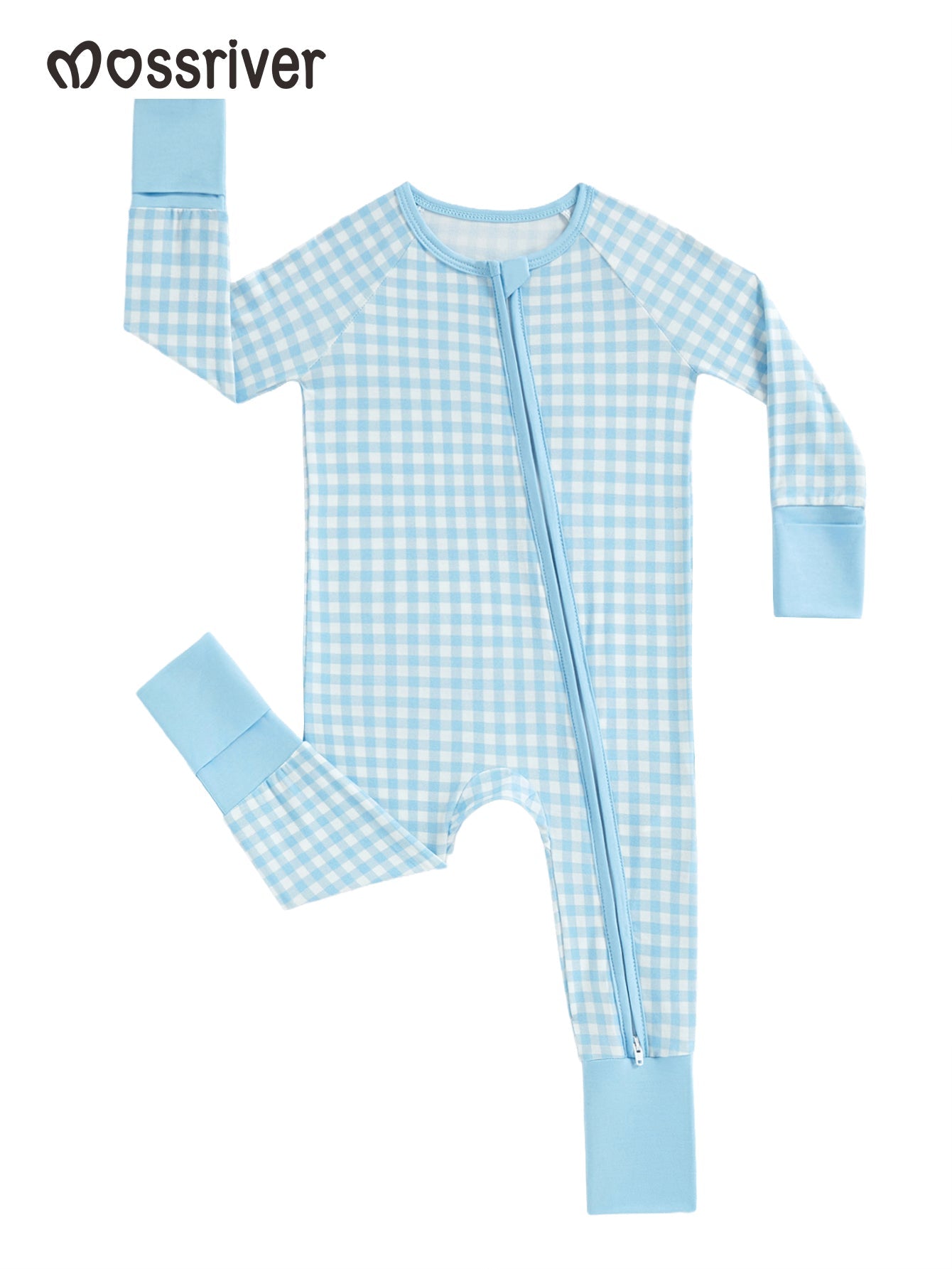 Wrap your little one in the gentle embrace of MOSSRIVER's unbelievably soft baby footed pajama. Crafted from a premium blend of bamboo fiber and spandex, this long-sleeved one-piece offers exceptional comfort and a gentle stretch that moves with your baby. The adorable gingham print features a classic check pattern in soft blue and white, adding a touch of timeless charm to your baby's wardrobe. This versatile outfit is perfect for year-round wear, ensuring your baby stays cozy and comfortable in any season. Experience the optimized value of MOSSRIVER, where premium comfort meets exceptional affordability.