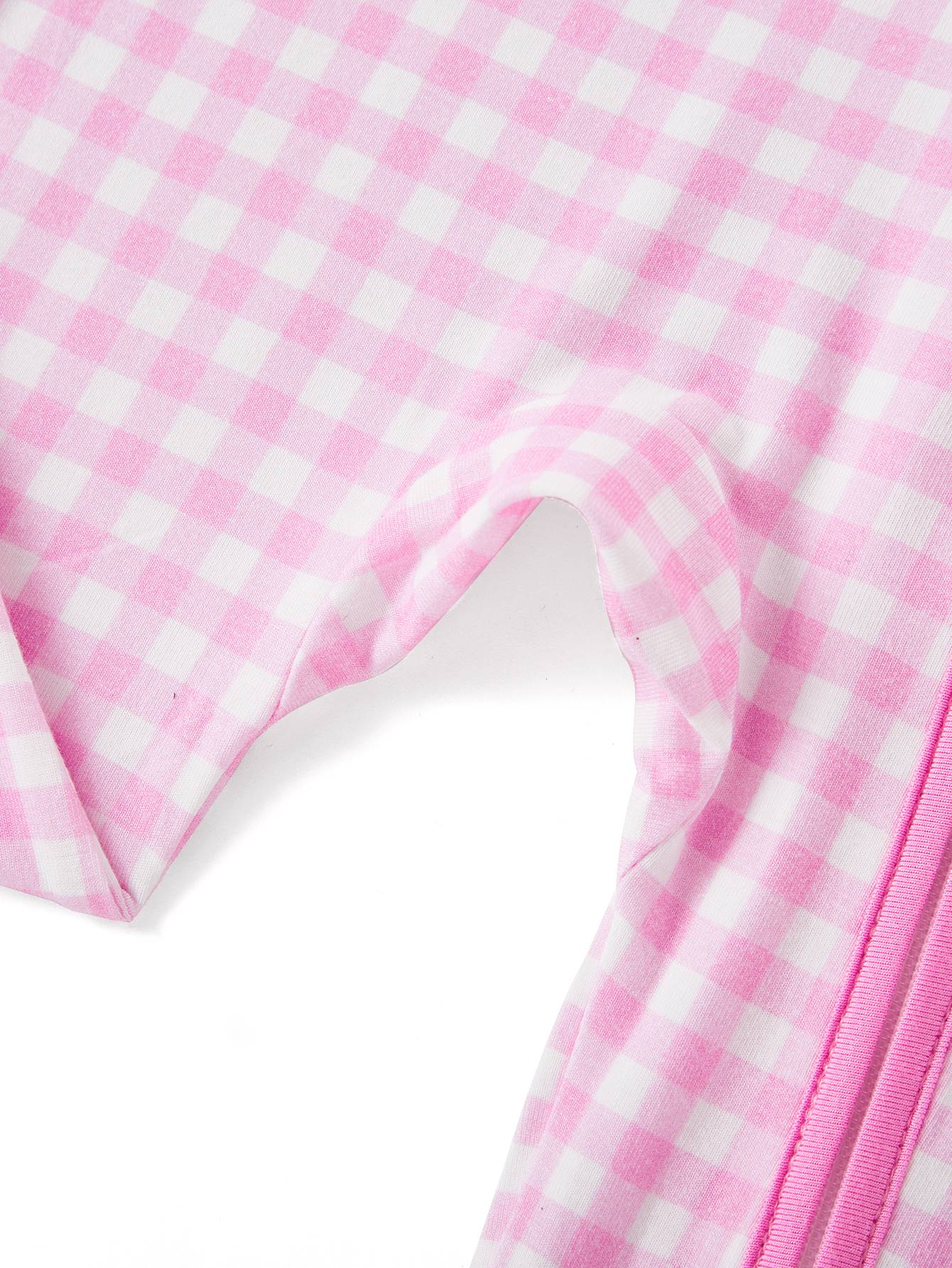 Footies Mitten Long-Sleeve Baby One-Piece Pink Gingham Double Zipper