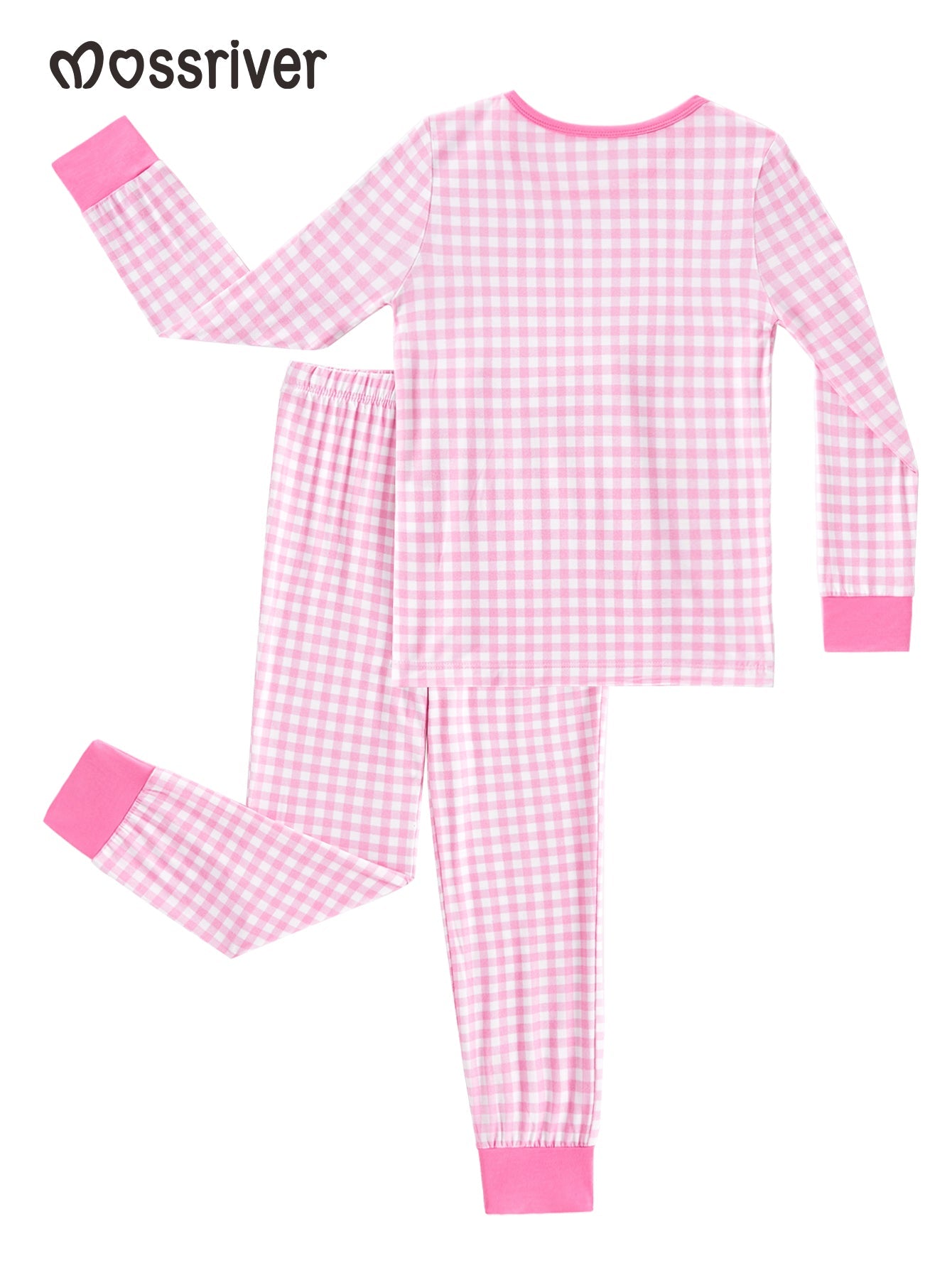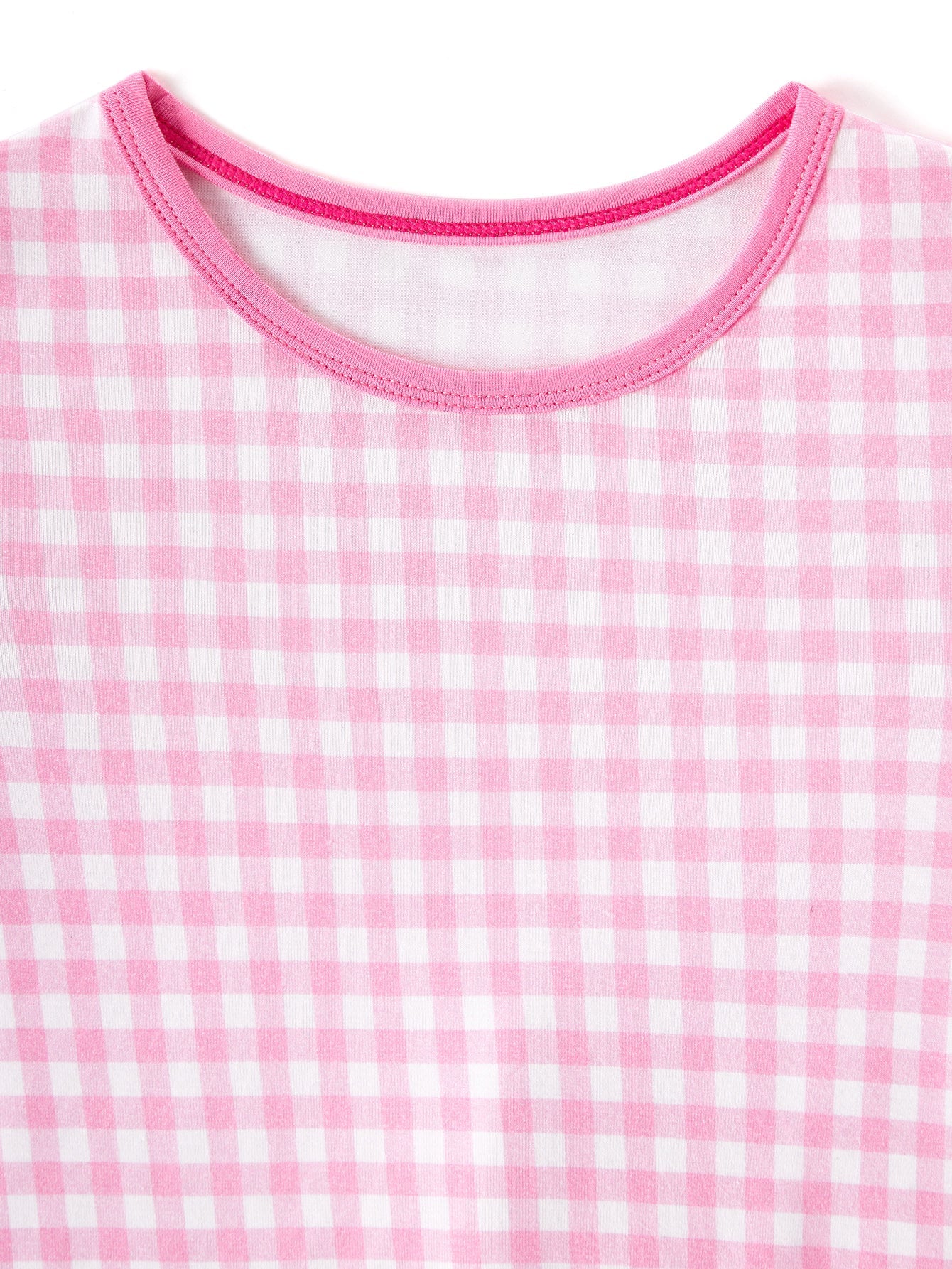 Pink Gingham Long-Sleeve Girls Pajamas Two-Piece