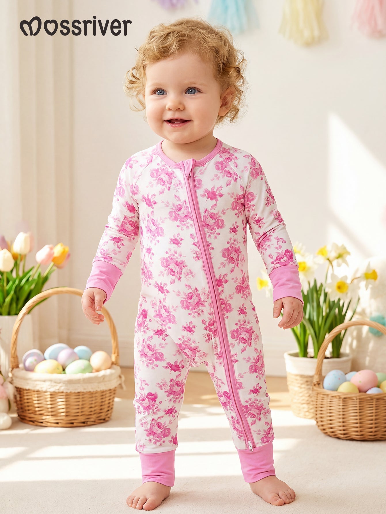 Valentine's Floral Footies Mitten Long-Sleeve Baby One-Piece Double Zipper