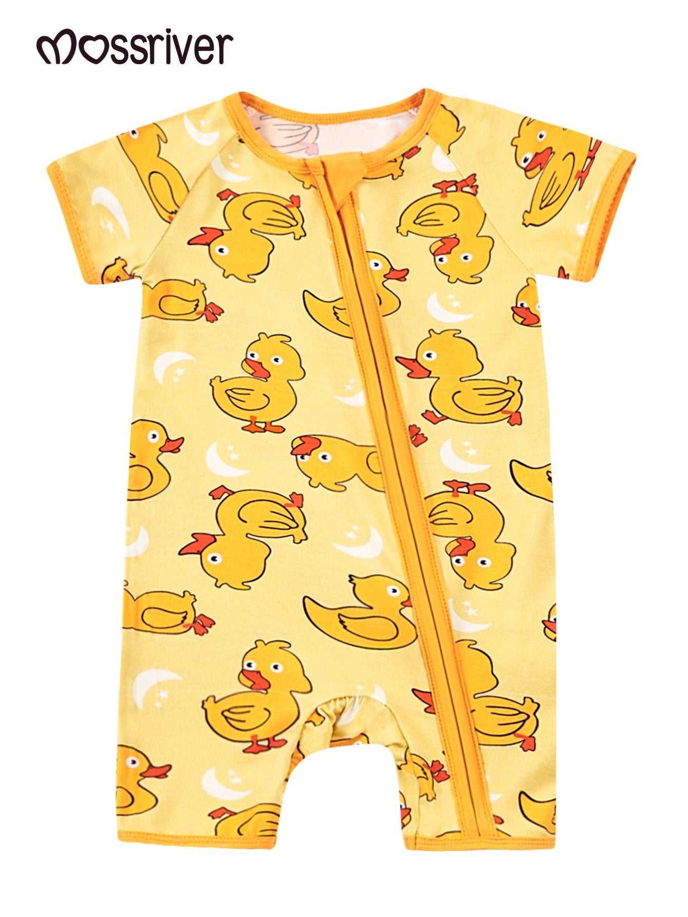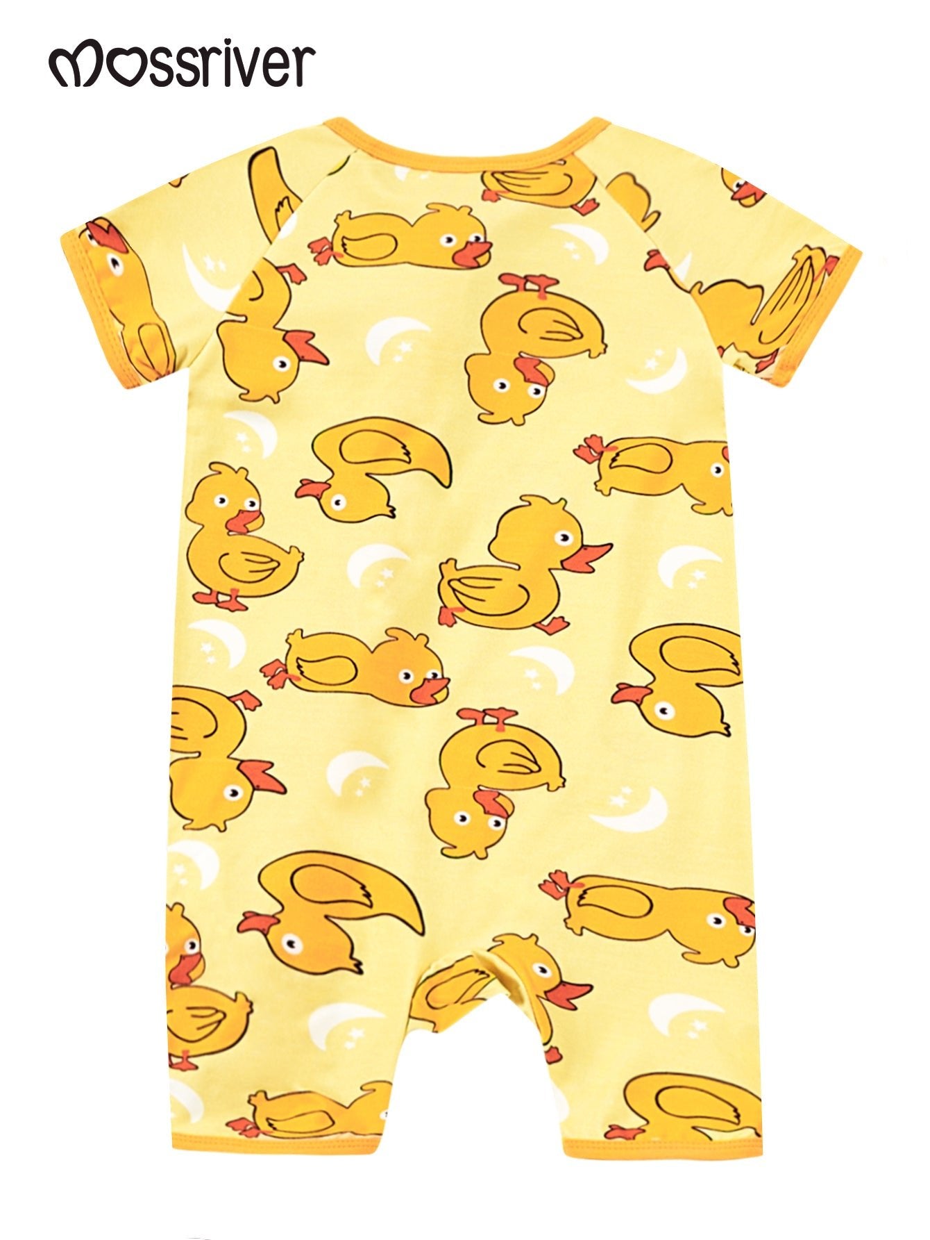 Wrap your little one in the gentle embrace of our MOSSRIVER baby one-piece. Crafted from a premium blend of bamboo fiber and spandex, this romper offers exceptional softness and a comfortable stretch that moves with your baby. The adorable Yellow Duckling print features cheerful yellow ducklings playfully arranged amongst subtle crescent moons, creating a sweet and whimsical design. Lightweight and breathable, this short-sleeved one-piece is perfect for keeping your baby cozy and happy all day long. The convenient zipper closure makes diaper changes quick and easy. Experience the perfect combination of comfort, value, and charming style for your precious little one.